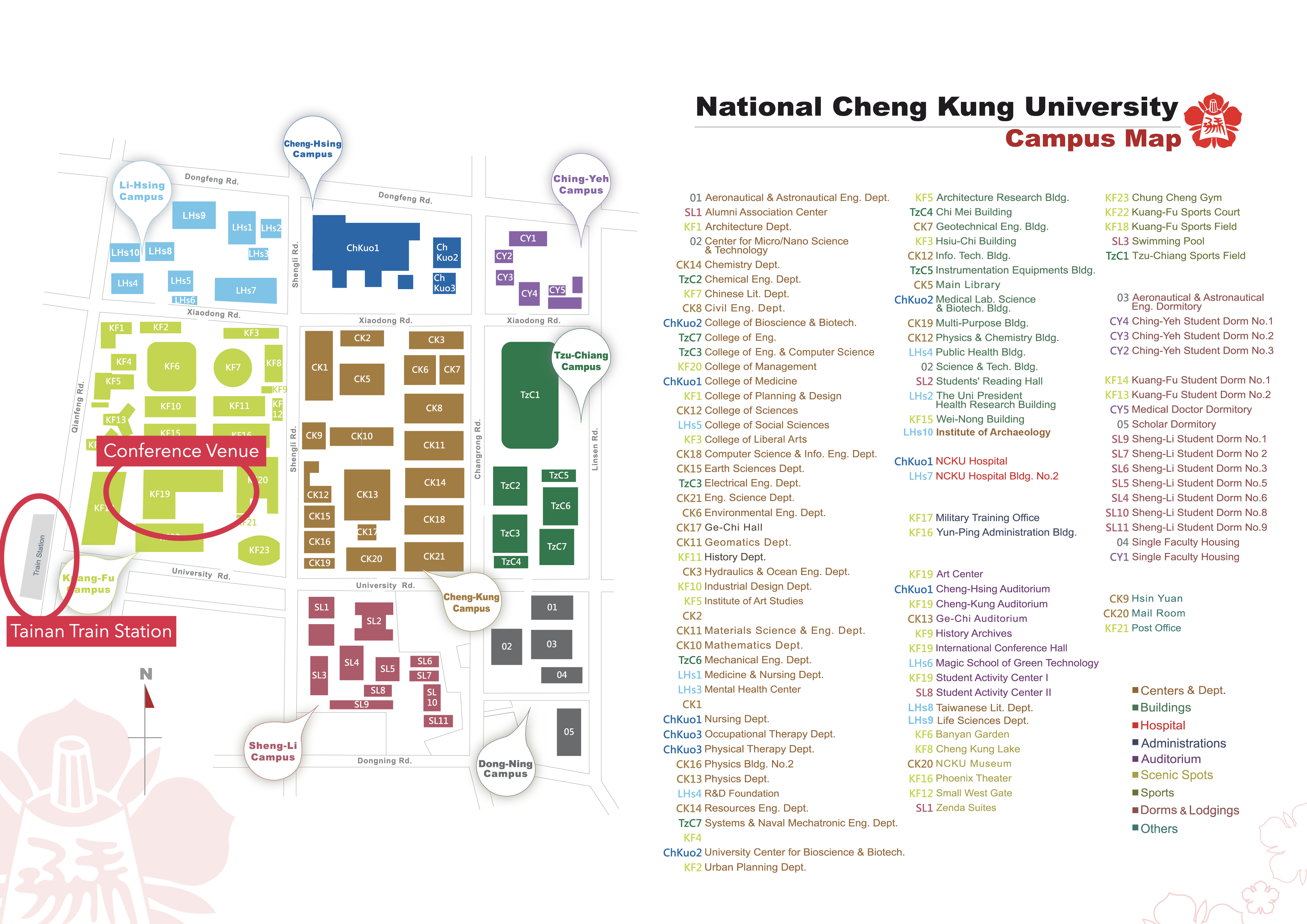 Take National Freeway No.1 (Sun Yat-Sen Freeway) southbound to NCKU main campus through Dawan Interchange:From the North Take National Freeway No.1 (Sun Yat-Sen Freeway) northbound to NCKU main campus through Rende Interchange:From the South